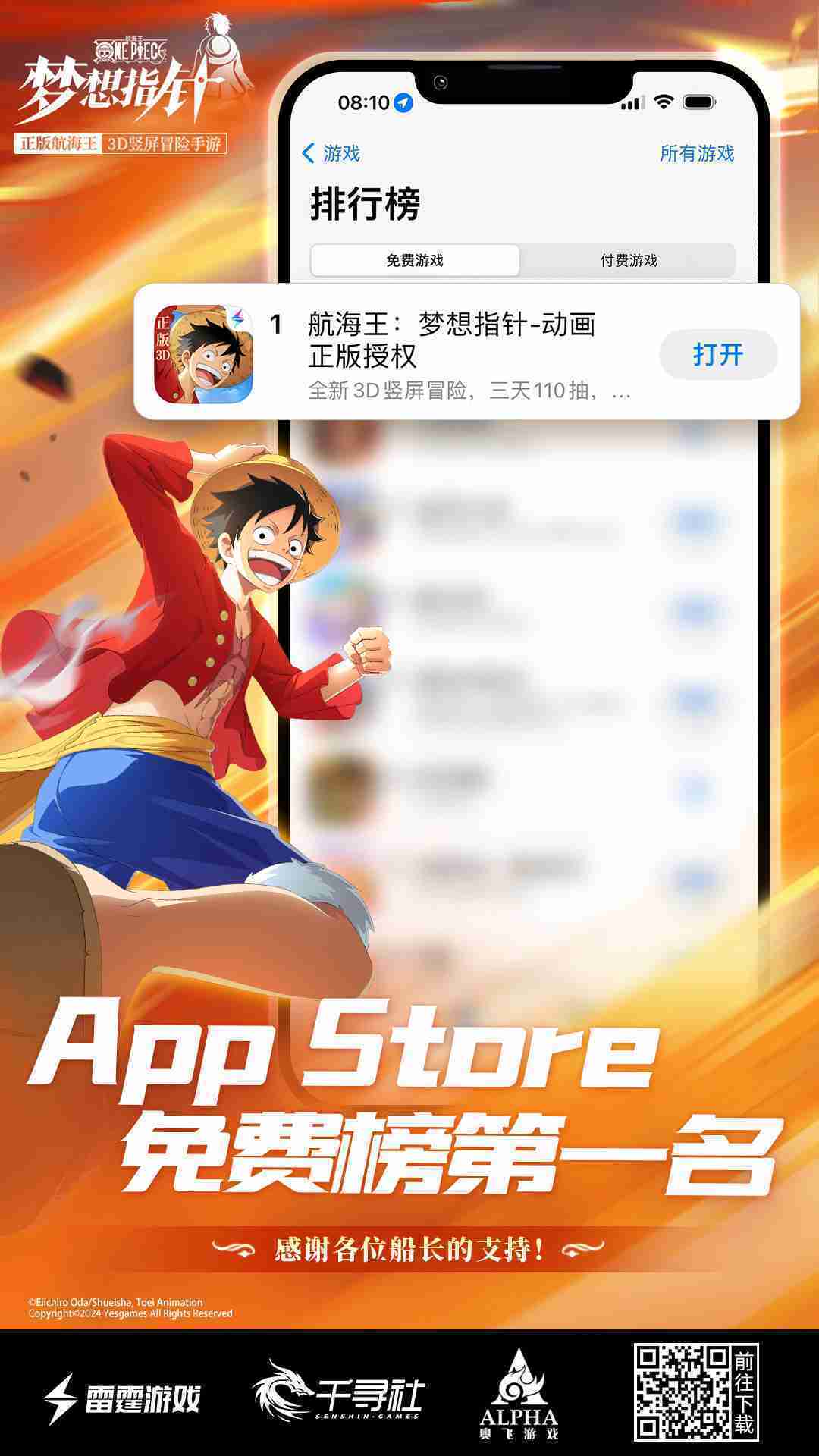《航海王::::梦想指针》登顶App Store免费榜,,公测福利汇总!!!